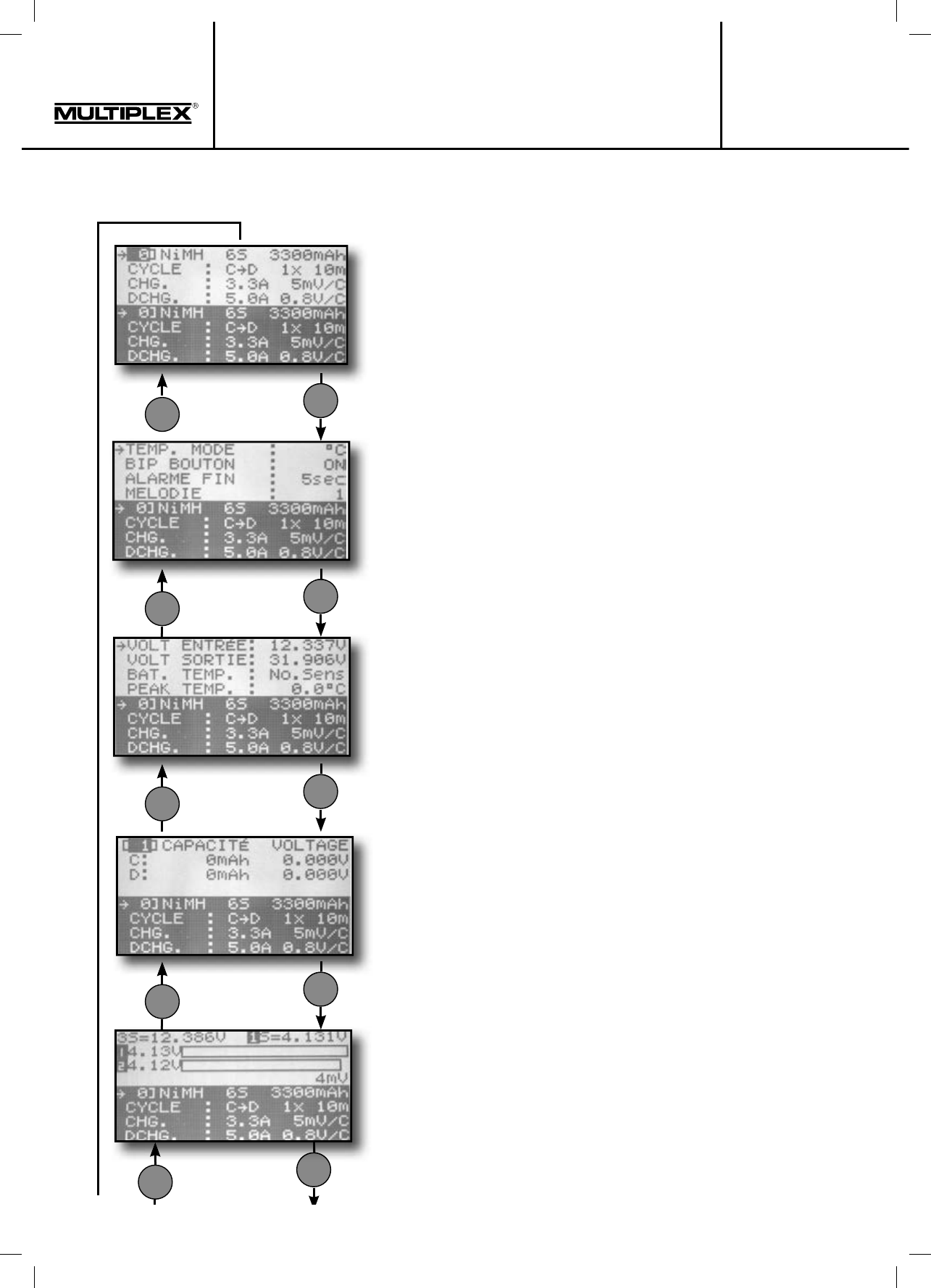 sont affichés dans le menu „PARAMETRES ACCU“ (voir