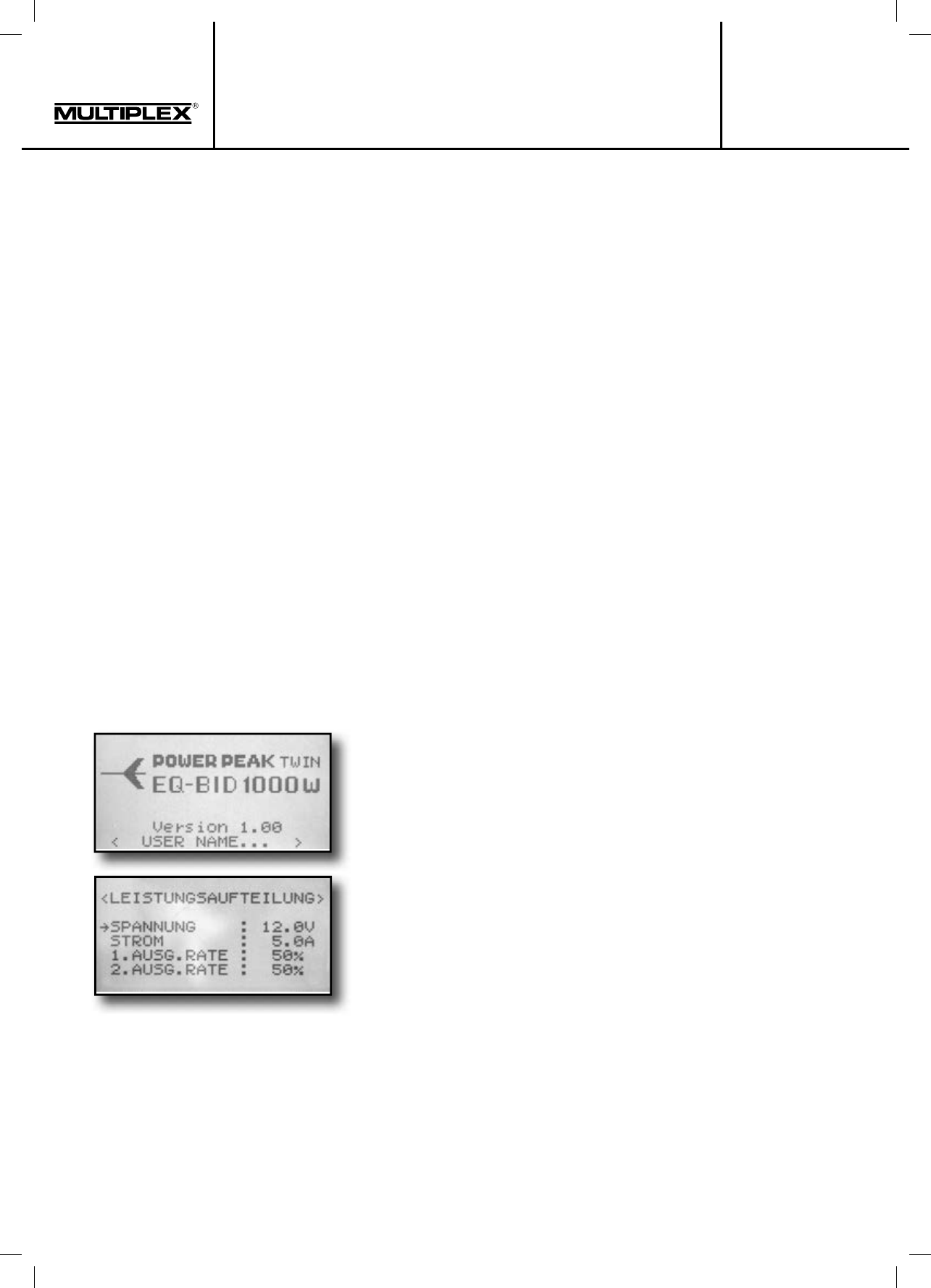 Hiernach erscheint das Leistungsaufteilungsdisplay. Mit die-