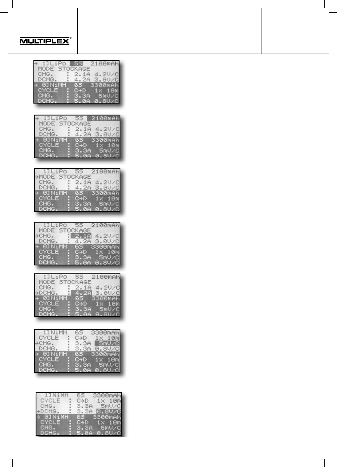 En activant la ligne „CHARGE“ l'intensité de charge peut
