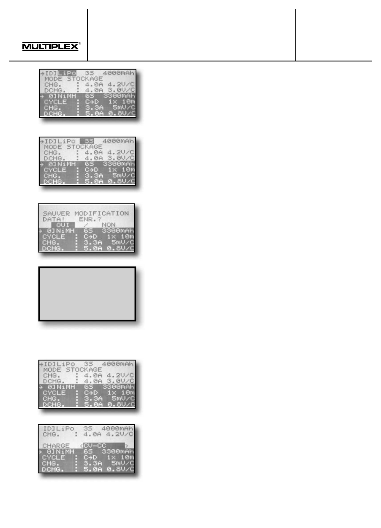 Il faut en plus sélectionner le mode (CHARGE, DECHARGE,