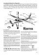 D Sicherheitshinweise Prüfen Sie vor jedem Start den festen Sitz des Motors und der Luftschraube - insbesondere nach dem Transport, härteren Landungen sowie Abstürzen. Prüfen Sie ebenfalls vor jedem Start den festen Sitz und die richtige Position der Tragflächen auf dem Rumpf. Akku erst einstecken, wenn Ihr Sender eingeschaltet ist und Sie sicher sind, daß das Bedienelement für die Motorsteuerung auf "AUS" steht. Im startbereiten Zustand nicht in den Bereich der Luftschraube greifen.