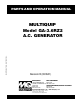 HERE'S HOW TO GET HELP PLEASE HAVE THE MODEL AND SERIAL NUMBER ON-HAND WHEN CALLING PARTS DEPARTMENT 800-427-1244 or 310-537-3700 FAX: 800-672-7877 or 310-637-3284 SERVICE DEPARTMENT/TECHNICAL ASSISTANCE 800-478-1244 or 310-537-3700 FAX: 310- 537-4259 WARRANTY DEPARTMENT 888-661-4279, or 310-661-4279 FAX: 310- 537-1173 MAIN 800-421-1244 or 310-537-3700 FAX: 310-537-3927 GA-3.6RZ2 A.C. GENERATOR — PARTS & OPERATION MANUAL — REV.
