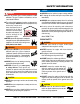 Safety Information BaTTeRY SaFeTY NOTICE NeveR run engine without an air filter or with a dirty air filter. Severe engine damage may occur. Service air filter frequently to prevent engine malfunction. NeveR tamper with the factory settings of the engine or engine governor. Damage to the engine or equipment can result if operating in speed ranges above the maximum allowable. FueL SaFeTY daNgeR daNgeR dO NOT drop the battery. There is a possibility that the battery will explode.