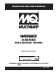 OPERATION AND PARTS MANUAL HERE’S HOW TO GET HELP PLEASE HAVE THE MODEL AND SERIAL NUMBER ON-HAND WHEN CALLING UNITED STATES Multiquip Corporate Office 18910 Wilmington Ave. Carson, CA 90746 Contact: mq@multiquip.com MQ Parts Department Tel. (800) 421-1244 Fax (800) 537-3927 Mayco Parts 800-427-1244 310-537-3700 Fax: 800-672-7877 Fax: 310-637-3284 Warranty Department 800-306-2926 310-537-3700 Fax: 800-672-7877 Fax: 310-637-3284 Service Department 800-421-1244, Ext. 279 310-537-3700, Ext.