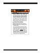 B-SERIES TROWEL— SAFETY MESSAGE ALERT SYMBOLS Accidental Starting ALWAYS place the engine ON/OFF switch in the OFF position, when the trowel is not in use. Over Speed Conditions NEVER tamper with the factory settings of the engine governor or settings. Personal injury and damage to the engine or equipment can result if operating in speed ranges above maximum allowable. NOTE This walk-behind trowel, other property, or the surrounding environment could be damaged if you do not follow instructions.