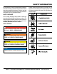 Safety Information FUel saFetY DANGER DO NOT start the engine near spilled fuel or combustible fluids. Diesel fuel is extremely flammable and its vapors can cause an explosion if ignited. Make sure the hitch and coupling of the towing vehicle are rated equal to, or greater than the trailer “gross vehicle weight rating.” alWaYs inspect the hitch and coupling for wear. never tow a trailer with defective hitches, couplings, chains, etc.