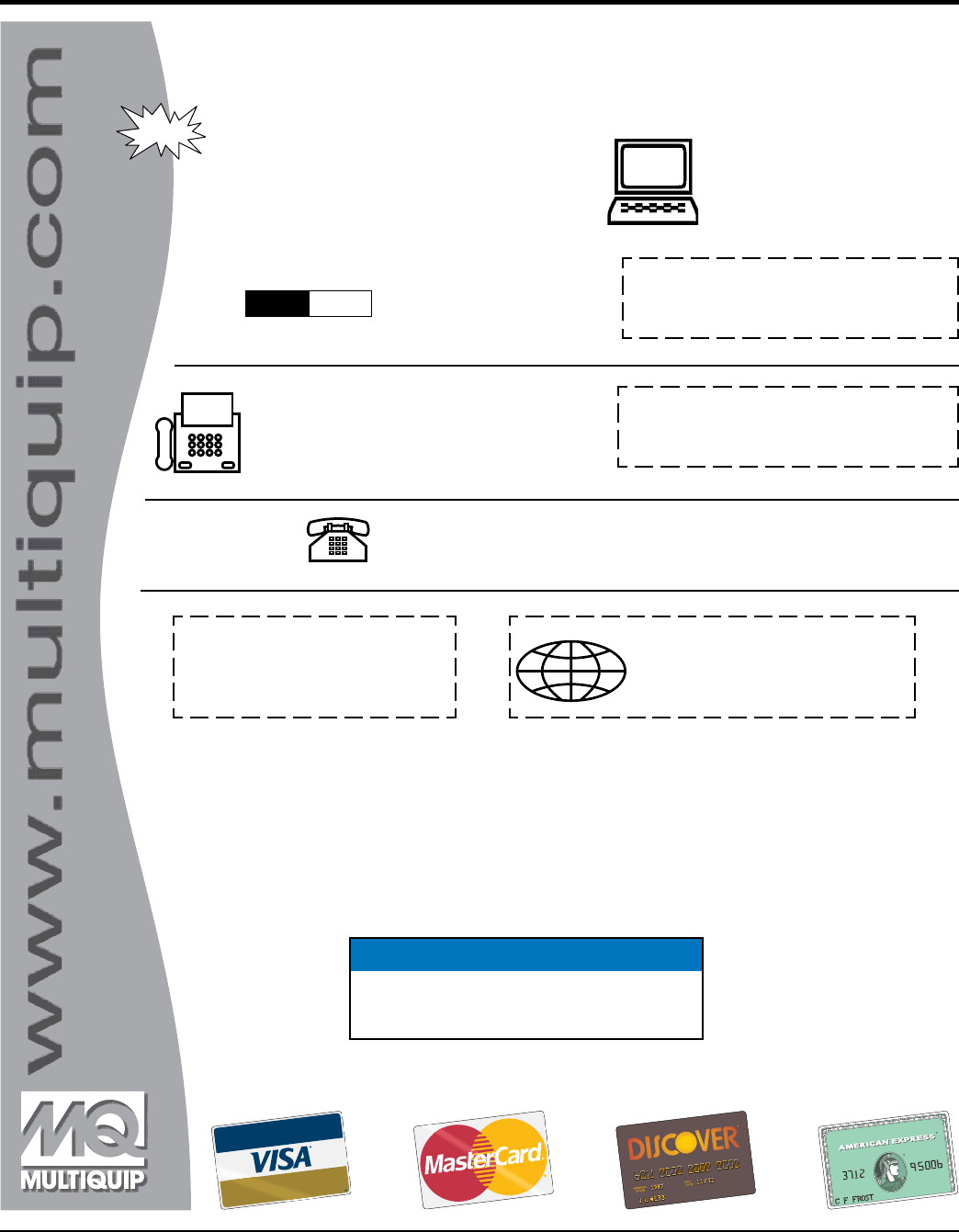 and Password, E-mail us at: parts@multiquip.