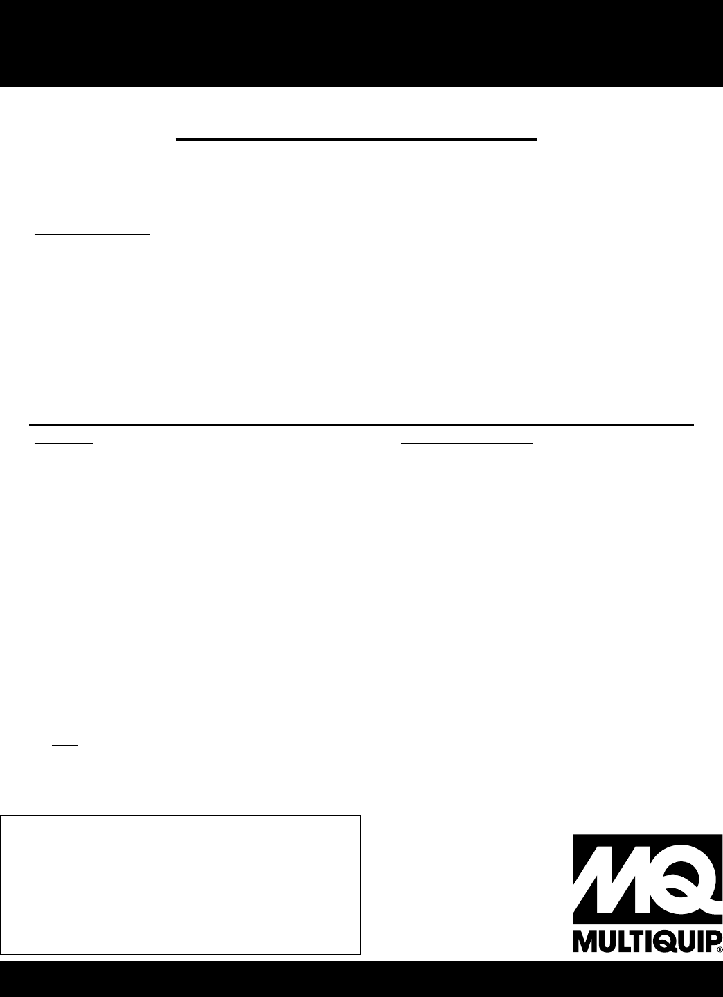 © COPYRIGHT 2011, MULTIQUIP INC.
