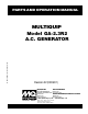 PARTS AND OPERATION MANUAL © COPYRIGHT 2001, MULTIQUIP INC. MULTIQUIP Model GA-2.3R2 A.C. GENERATOR Revision #2 (03/05/01) MULTIQUIP INC.. PARTS DEPARTMENT: 18910 WILMINGTON AVE. 800-427-1244 CARSON, CALIFORNIA 90746 FAX: 800-672-7877 SERVICE DEPARTMENT/TECHNICAL ASSISTANCE: 310-537-3700 800-421-1244 800-478-1244 FAX: 310-537-3927 FAX: 310-631-5032 E-mail:mq@multiquip.com • www:multiquip.