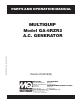 PARTS AND OPERATION MANUAL © COPYRIGHT 2001, MULTIQUIP INC. MULTIQUIP Model GA-6RZR2 A.C. GENERATOR Revision #5 (09/16/05) MULTIQUIP INC.. PARTS DEPARTMENT: 18910 WILMINGTON AVE. 800-427-1244 CARSON, CALIFORNIA 90746 FAX: 800-672-7877 SERVICE DEPARTMENT/TECHNICAL ASSISTANCE: 310-537-3700 800-421-1244 800-478-1244 FAX: 310-537-3927 FAX: 310-631-5032 E-mail:mq@multiquip.com • www:multiquip.