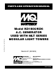 © COPYRIGHT 2002, MULTIQUIP INC. PARTS AND OPERATION MANUAL Model KD1800/KD6 A.C. GENERATOR USED WITH MLT SERIES MODULAR LIGHT TOWERS Revision #1 (06/16/05) MULTIQUIP INC.. PARTS DEPARTMENT: 18910 WILMINGTON AVE. 800-427-1244 CARSON, CALIFORNIA 90746 FAX: 800-672-7877 SERVICE DEPARTMENT/TECHNICAL ASSISTANCE: 310-537-3700 800-421-1244 800-478-1244 FAX: 310-537-3927 FAX: 310-631-5032 E-mail:mq@multiquip.com • www:multiquip.