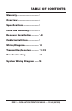 TABLE OF CONTENTS Warranty ............................. 3 Overview ............................ 4 Specifications .................... 5 Care And Handling ............. 6 Receiver Installation ......... 7-8 Cable Installation .............. 9 Wiring Diagram................... 10 Transmitter/Receiver ......... 11-12 Troubleshooting ................. 13 System Wiring Diagram ..... 14 PAGE 2 — INSTALLATION OPERATION MANUAL — REV.
