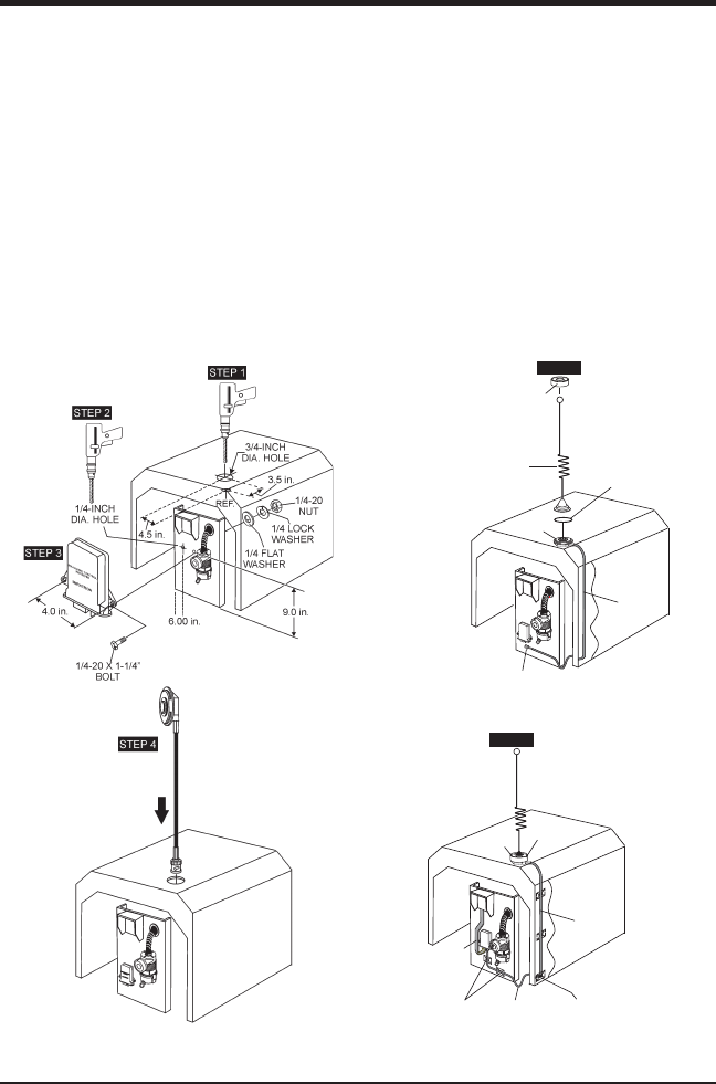 Using a 1/4-20 x 1-1/4 bolt (2), 1/4 lock washer (2), 1/4 fl at washer (2) 3.