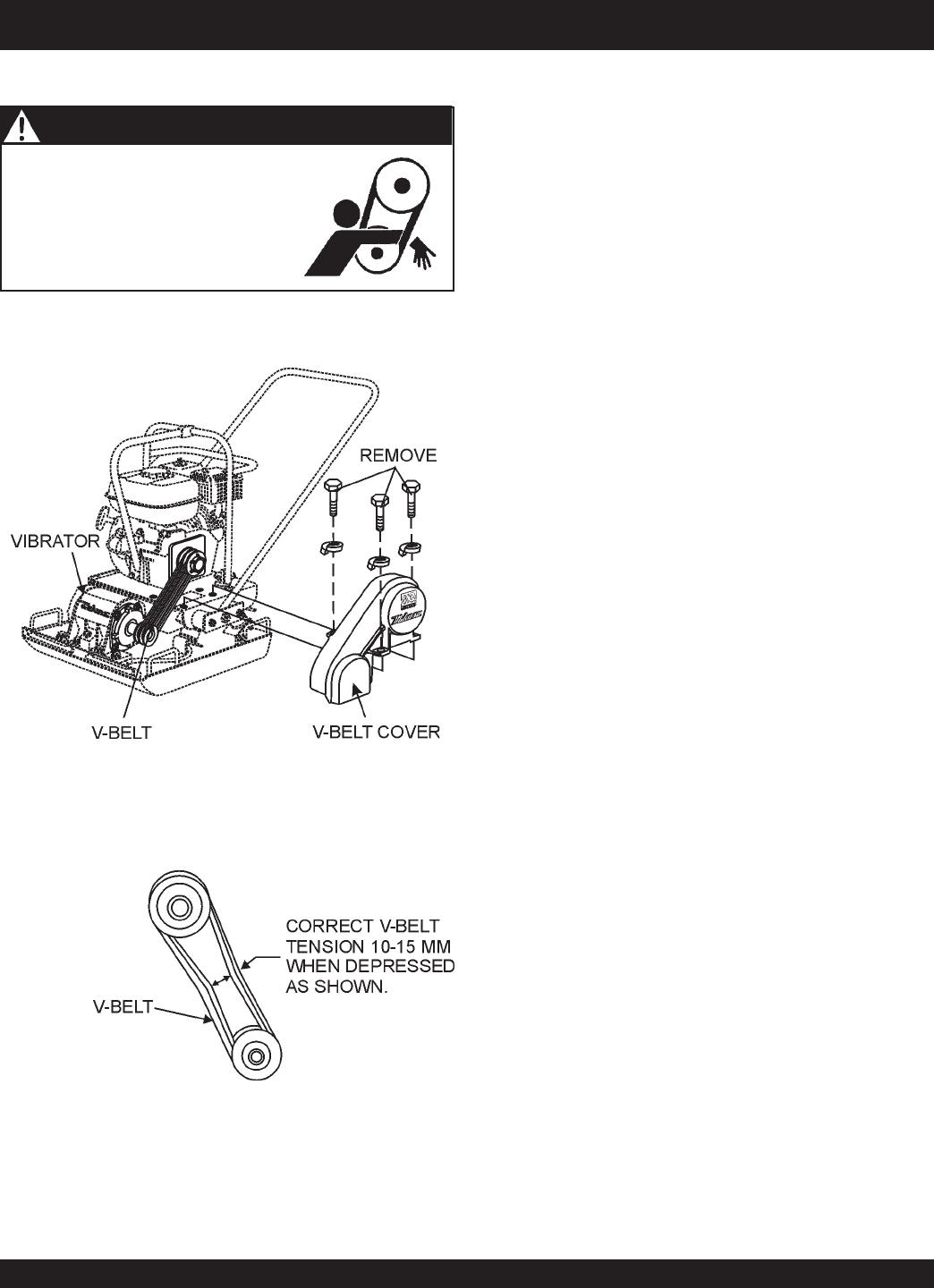 5. Place the V-belt on the lower vibrator pulley. Push the V-belt