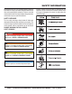 SAFETY INFORMATION ENGINE SAFETY DANGER The engine fuel exhaust gases contain poisonous carbon monoxide. This gas is colorless and odorless, and can cause death if inhaled. The engine of this equipment requires an adequate free flow of cooling air. NEVER operate this equipment in any enclosed or narrow area where free flow of the air is restricted. If the air flow is restricted it will cause injury to people and property and serious damage to the equipment or engine.