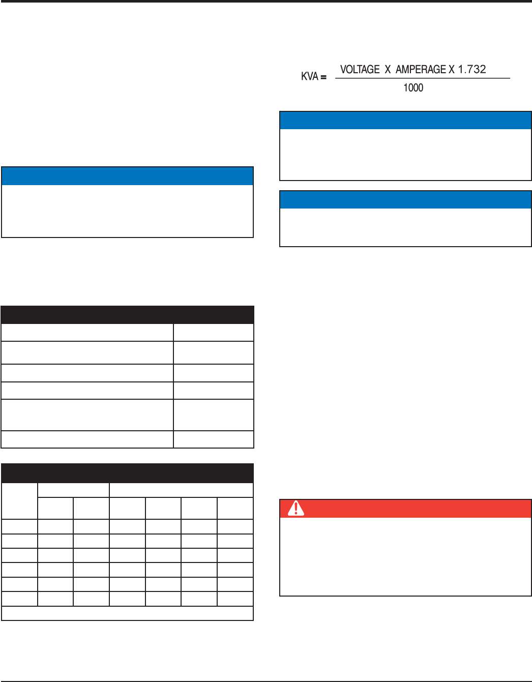 Table 6. Cable Selection (60 Hz, Single Phase Operation)