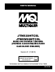 Parts Manual HERE’S HOW TO GET HELP PLEASE HAVE THE MODEL AND SERIAL NUMBER ON-HAND WHEN CALLING CHINA MQ Shanghai, China No. 1355 Heng Cang Road Ma Lu Town Jia Ding District Shanghai, China 201818 Tel. 011 86 21 59512076 Fax 011 86 21 59512336 Contact: Xiwen Shi xshi@multiquip.com © COPYRIGHT 2013, MULTIQUIP INC. Multiquip Inc, the MQ logo are registered trademarks of Multiquip Inc. and may not be used, reproduced, or altered without written permission.