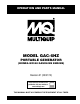 Operation and Parts Manual MODEL gaC-6HZ portable generator (HONDA GX340 GASOLINE ENGINE) Revision #1 (03/31/10) To find the latest revision of this publication, visit our website at: www.multiquip.com THIS MANUAL MUST ACCOMPANY THE EQUIPMENT AT ALL TIMES.