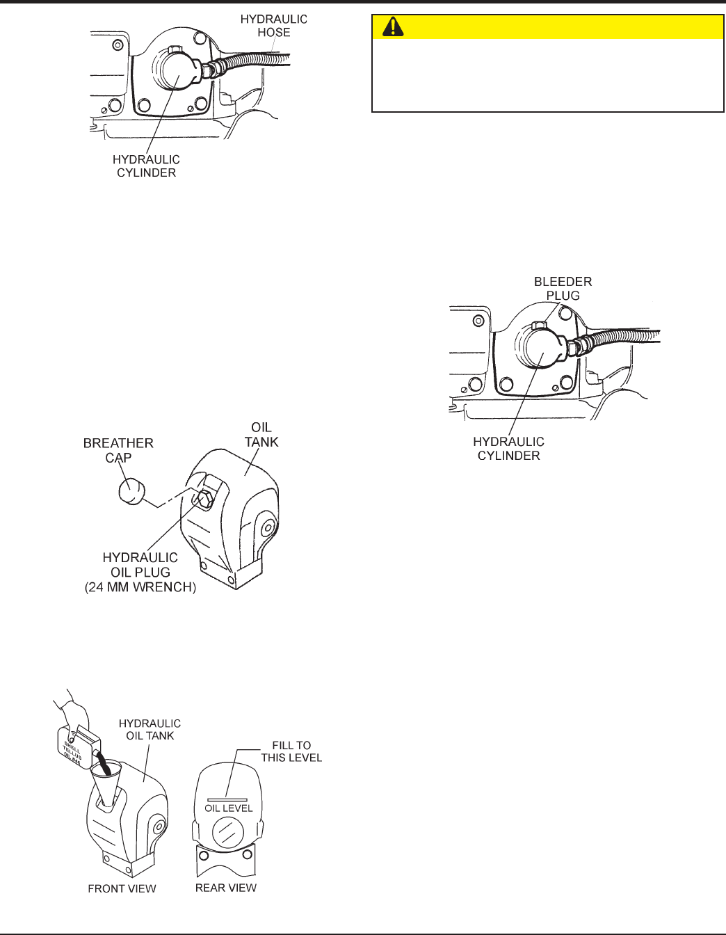 3. Loosen bleeder plug located at top of hydraulic cylinder on