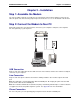 Chapter 2 - Installation MultiModemUSB User Guide Chapter 2 – Installation Step 1: Assemble the Modem The only assembly required is to mount the feet on the bottom of the modem. Simply peel the four selfadhesive plastic feet off the backing strip and press them into the recesses on the bottom of the modem. Step 2: Connect the Modem to Your PC Placing the modem in a convenient location, connect it to your computer’s USB port, to the telephone line, and, optionally, to your telephone.