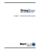 Chapter 1 - Introduction and Description Chapter 5 - Remote Configuration and Management Chapter 5 provides procedures for changing the configuration of a remote ProxyServer. Remote configuration allows you to change the configuration of a unit by simply connecting two modems between the two ProxyServers and remotely controlling the unit. Chapter 5 also describes typical client applications (i.e., Telnet and Web-based management) used for remote configuration of the ProxyServer.