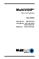 User Guide S000249K Analog MultiVOIP Units (Models MVP130,MVP130FXS, MVP210, MVP410, MVP810) ISDN-BRI MultiVOIP Units (Models MVP410ST, and MVP810ST) Digital MultiVOIP Units (Models MVP2410, & MVP3010) Upgrade Units (MVP24-48 and MVP30-60) This publication may not be reproduced, in whole or in part, without prior expressed written permission from Multi-Tech Systems, Inc. All rights reserved. Copyright © 2009, by Multi-Tech Systems, Inc. Multi-Tech Systems, Inc.