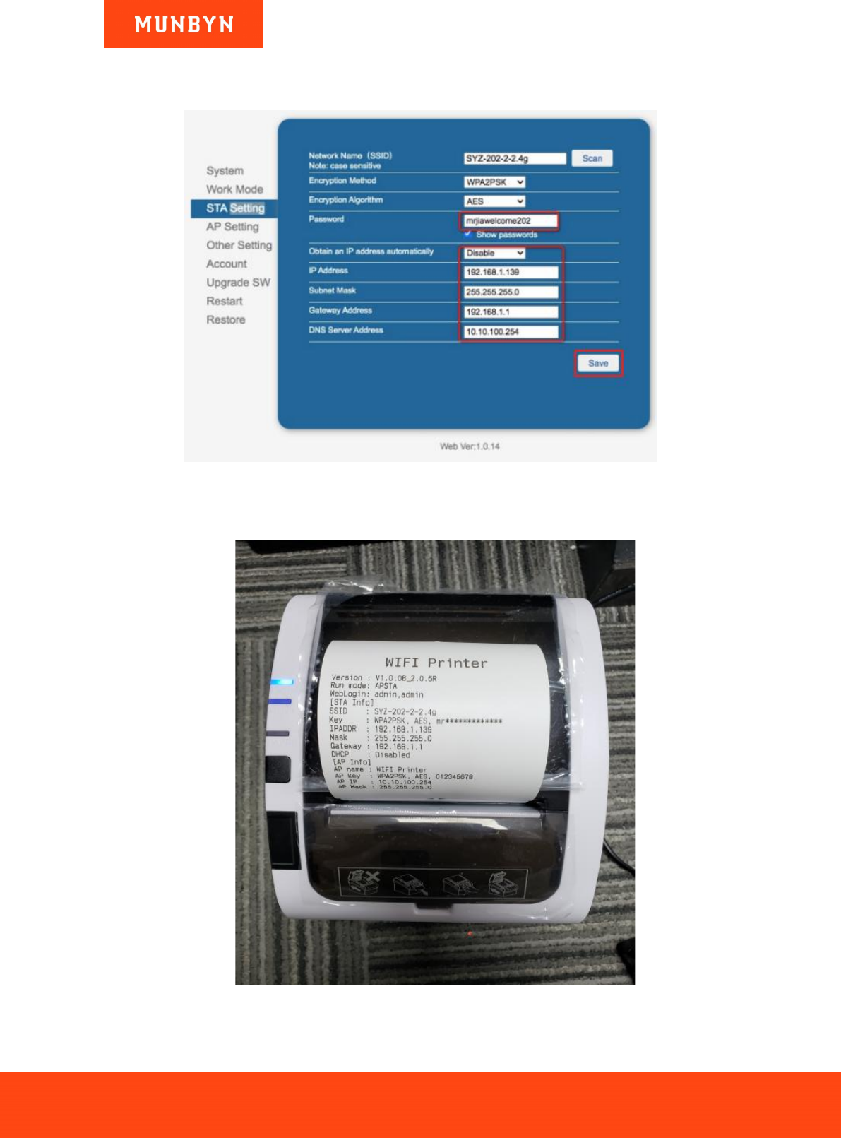 6) Enter the WiFi Password and the IP information (Refer to the step d of the chapter 4.1.1, The first