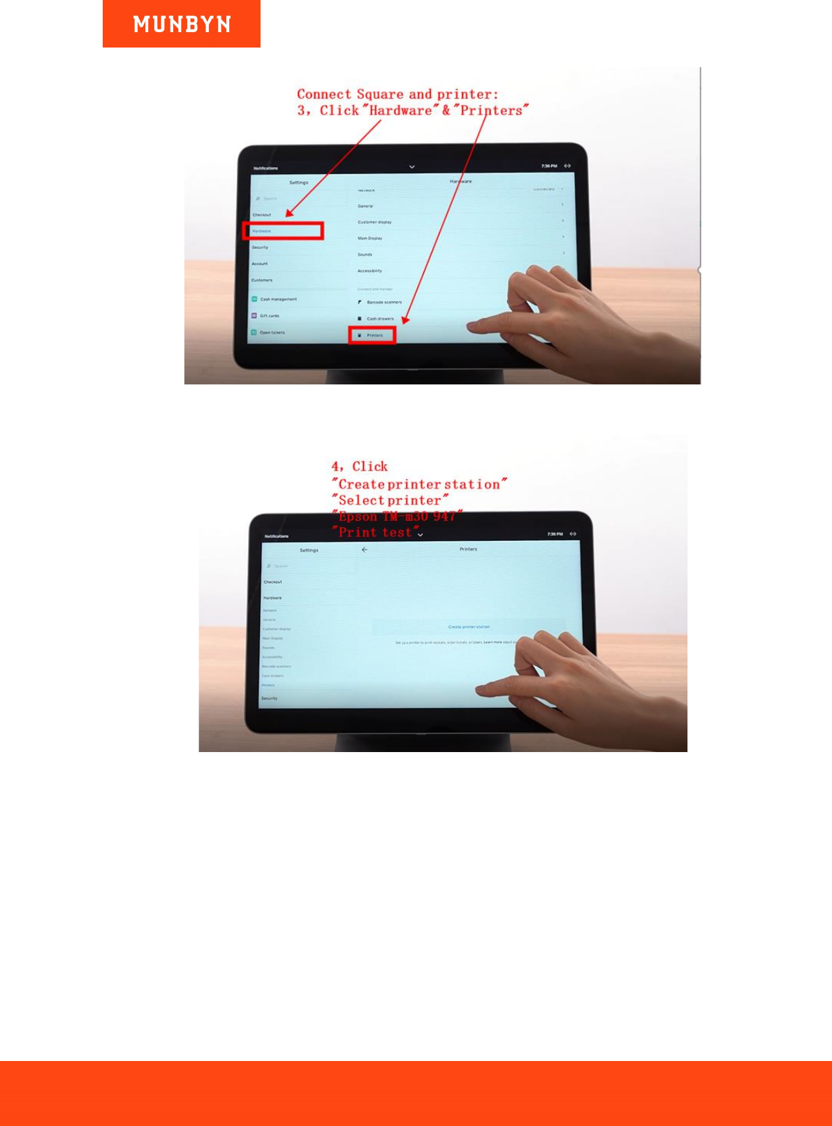 7) Click "Create printer station"->"Select printer"->"Epson TM-m30 947"->"Print test".