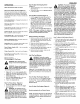 ENGLISH Safe Operation Practices for Snow Throwers As Recommended By: American National Standards Institute. IMPORTANT: Safety standards require operator presence controls to minimize the risk of injury. Your snow thrower is equipped with such controls. Do not attempt to defeat the function of the operator presence control under any circumstances. Training 1. 2. 7. Never attempt to make any adjustments while the engine (motor) is running (except when specifically recommended by manufacturer). 11.