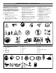 STEPS TO FOLLOW BEFORE MOWING F Be sure to dress correctly. Wear hard shoes, not sandals or tennis shoes. F Examine the blade. A blade that is bent, cracked, or damaged must be replaced with a factory replacement blade. F Fill the fuel tank outside. Clean off spilled fuel. F Read and follow the Owner’s Manual, the instructions with the engine, and the instructions with any attachments. Owner’s Manual instructions are for your safety and the safety of others. F Exhaust fumes are dangerous.