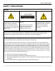 SAFETY PRECAUTIONS SAFETY PRECAUTIONS CAUTION: The lightning flash with arrowhead symbol, within an equilateral triangle, is intended to alert the user to the presence of dangerous voltage and to prevent from risk of electric shock. Warning: To reduce the risk of electric shock, don’t open the cover or cabinet. Refer servicing to qualified personnel only. The exclamation point within an equilateral triangle is intended to alert the user to important operating and maintenance (servicing).