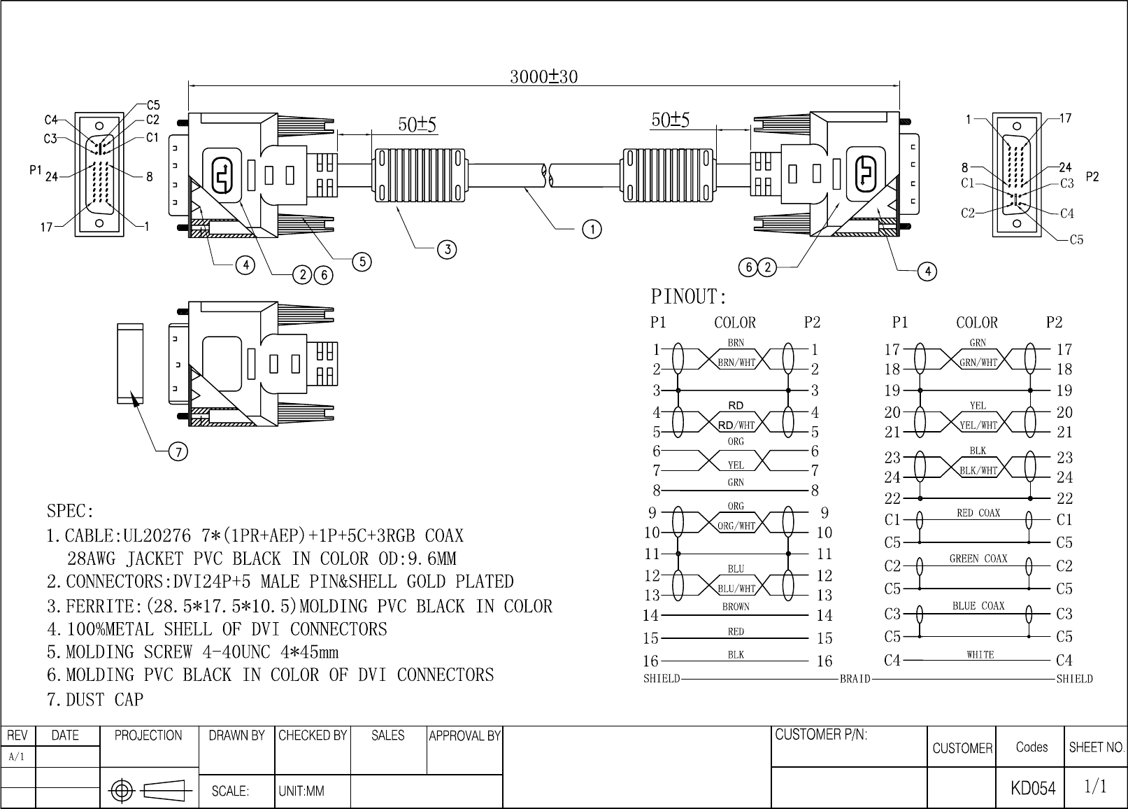MyCableMart 3ft DVI-I Dual Link Digital/Analog (28 AWG) Male to Male Gold Plated Cable