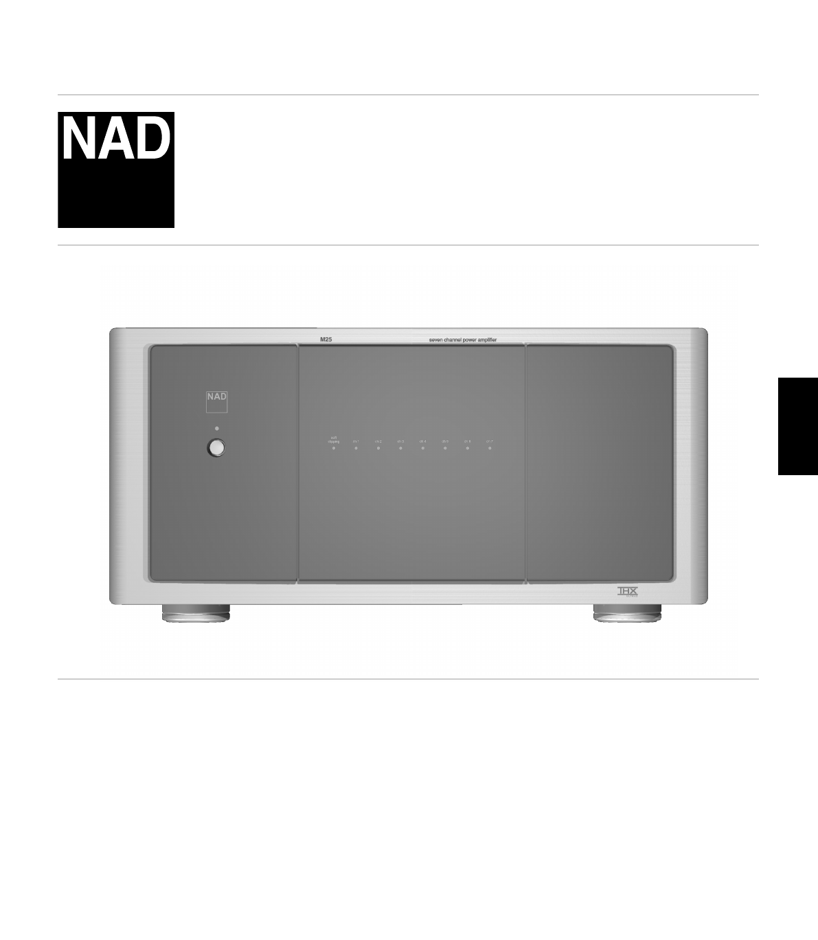 /4/2006 6:54 PM ® Page 1 M25 PORTUGUÊS SVENSKA Owner’s Manual Manuel d’Installation Bedienungsanleitung Gebruikershandleiding Manual del Usuario Manuale delle Istruzioni Manual do Proprietário Bruksanvisning ITALIANO ESPAÑOL NEDERLANDS DEUTSCH FRANÇAIS Seven Channel Power Amplifier ENGLISH M25 07092005.