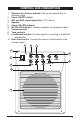 CONTROLS AND CONNECTIONS Wireless mic receiver antenna Pull out and extend fully for optimum range 2. Power ON/OFF switch 3. MIC and AUX signal input jacks ¼” TS (mono) 4. Speaker 5. Power ON LED indicator 6. RF ON LED indicator Indicates reception of transmitter signal 7. Volume controls 8. Tone controls 9. Line/Record out jack Provides signal for recording or additional amplification 10. Echo level control Controls the amount of echo/reverb in the channel signal 1.