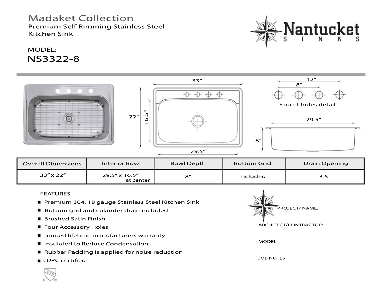 Premium 304, 18 gauge Stainless Steel Kitchen Sink