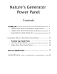 Nature’s Generator Power Panel Contents - Unpack Your Nature's Generator Power Panel - Unpack Your Solar Panel Accessory Box - Assemble Your Solar Panel Cart Using Your Nature's Generator Power Panel - Use Your Power Panel - Daisy Chain Your Power Panel 1 1 2 3 12 12 13 14 15 Limited Warranty 16