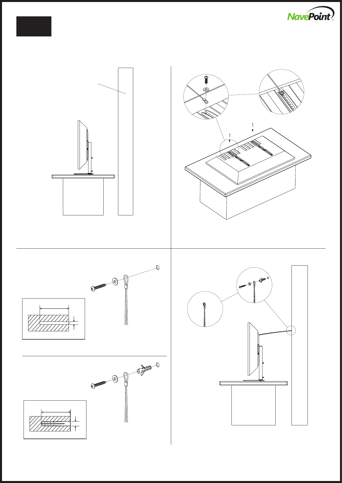 (as shown in diagram 5b), the other end of the security wire should then be attached to the wall, according to wall type (shown in diagram 5c, 5d