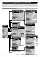 5 De beeldschermen Druk een keer op MENU voor het beeldschermmenu en kies een bepaald scherm door gebruik te maken van de of cursortoetsen en dan om te bevestigen. Sectie 2 Standaard bediening, beschrijft gedetailleerder hoe u de toetsen kunt gebruiken. Het beeldschermmenu wordt hier samengevat en elk beeldscherm wordt in de volgende secties weergegeven. De meeste beeldschermen beschikken over een optiemenu, zodat relevante functies snel verandert kunnen worden.