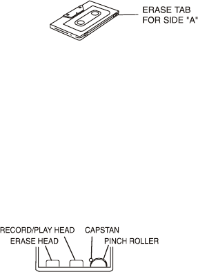 The erase head and record/play head and the surface of the pinch roller are delicate and must