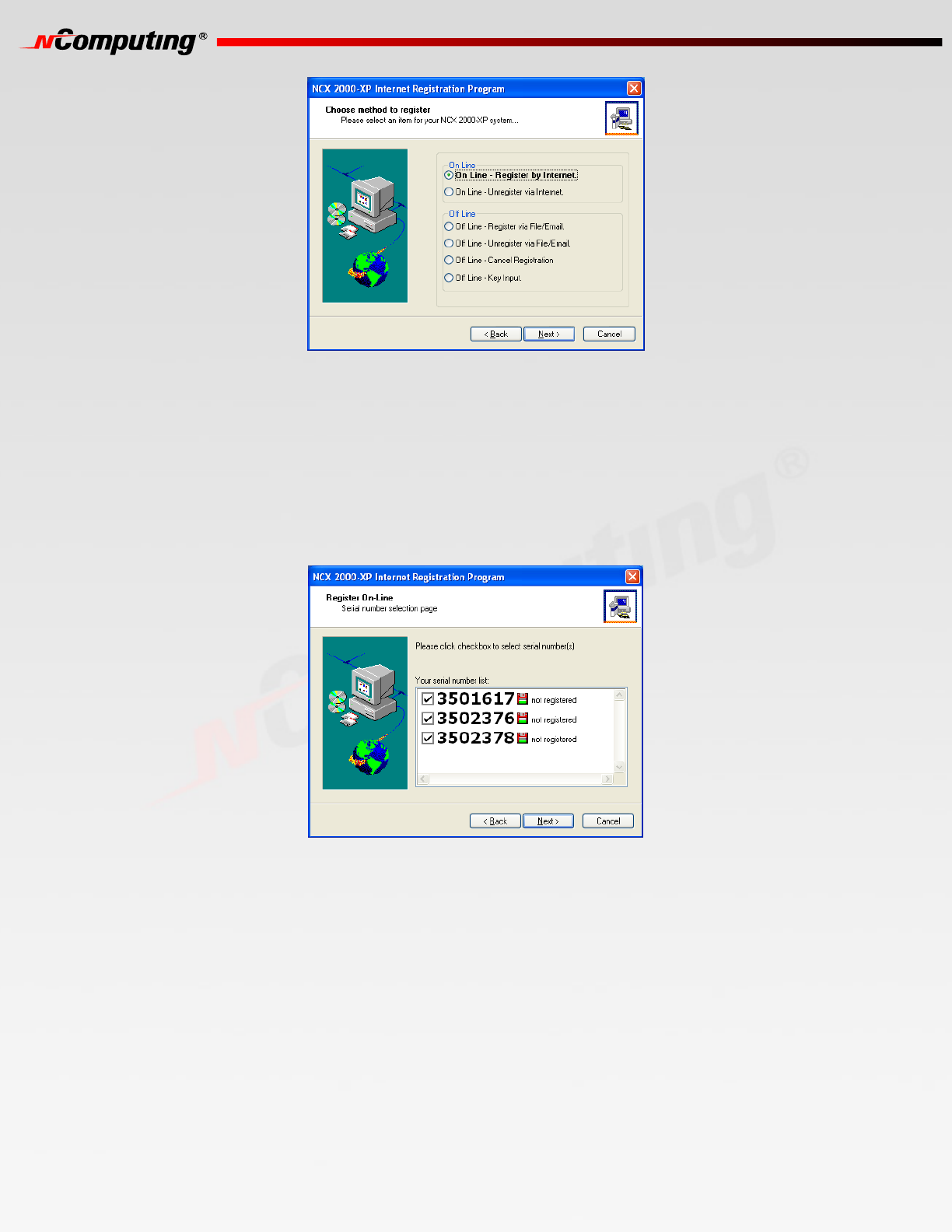 In the "Ready to register" screen, you see the user information you entered and the serial numbers you