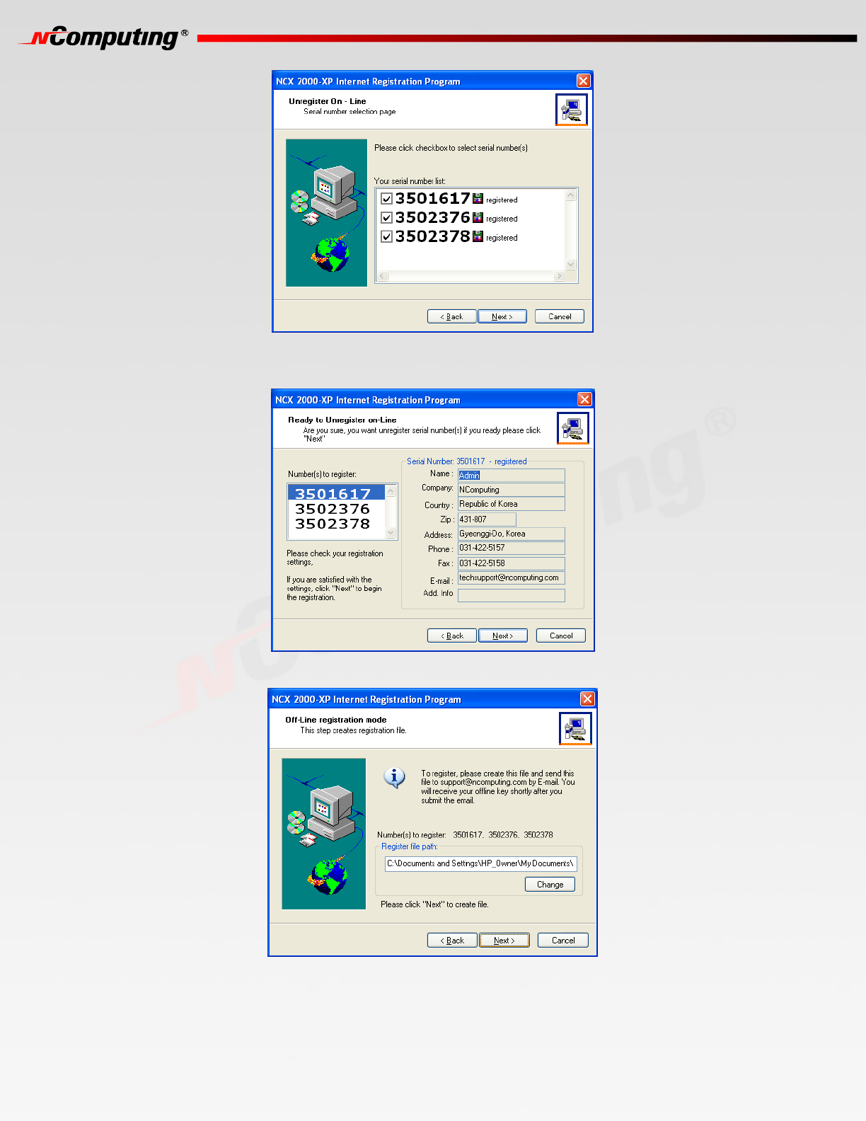 support@ncomputing.com. You will receive an email reply that includes an activation key for each