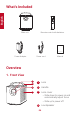 English What’s Included Remote control with batteries Main unit Owner’s Manual Power Adapter Power cord Manual Overview 1.
