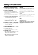 Setup Procedure 1. Determine the installation location * To ensure safe use, see “Before Use” and “Observe the Following,” then install properly. Warning For proper installation and mounting it is strongly recommended to use a trained, authorized NEC dealer. Failure to follow correct mounting procedures could result in damage to the unit or injury to the installer. Product warranty does not cover damage caused by improper installation. 2.