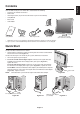 English Non-abrasive surface Figure R.1 Figure R.2 Figure R.3 Locking tabs Removing the Base NOTE: Always remove the Base when shipping the LCD. 1. Place monitor face down on a non-abrasive surface (Figure R.1). 2. While using your thumbs, press the bottom tabs upward to unlock. 3. Press the top tabs down to unlock and pull off the Base Stand. Connecting a Flexible Arm This LCD monitor is designed for use with a flexible arm. Please use screws (4pcs) as shown in the picture when installing.