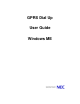 GPRS Dial Up Settings This section provides the information of: • How do I create a new Internet connection in order to utilize the NEC Wireless Phone as a modem? • How do I use the new Internet connection? • How do I end the GPRS connection? Creating a New Connection To create a new Internet connection in order to utilize the NEC Wireless Phone as a modem for Windows ME: 1. Ensure that the USB cable is still attached to your computer and NEC Wireless Phone with the phone powered on. 2.