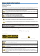 8. Using Optional Lenses [NP3250W] Screen Size 30" 40" 60" 67" 72" 80" 84" 90" 100" 120" 150" 180" 200" 210" 240" 261" 270" 300" 350" 400" 450" 500" NOTE: The values in the tables are design values and may vary. STANDARD 1.5 − 2.0 (m) (inches) 0.94 – 1.27 37.0 – 49.8 1.27 – 1.71 50.0 – 67.1 1.93 – 2.58 76.0 – 101.7 2.16 – 2.89 85.1 – 113.8 2.33 – 3.11 91.6 – 122.5 2.59 – 3.46 102.0 – 136.3 2.72 – 3.64 107.2 – 143.2 2.92 – 3.9 115.0 – 153.6 3.25 – 4.34 128.0 – 170.9 3.91 – 5.22 154.0 – 205.5 4.90 – 6.