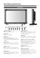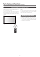 Parts Name and Functions Control Panel 9 10 Button Location EXIT 8 1 POWER button ( 7 6 5 INPUT MUTE 3 2 4 ) 1 7 DOWN ( Switches the power on/off. See also page 17. ) button Activates the OSM menu when the OSM menu is turned-off. Acts as button to move the highlighted area down to select the adjustment with OSM menu. 2 MUTE button Switches the audio mute ON/OFF. 8 EXIT button Activates the OSM menu when the OSM menu is turned-off.