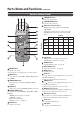 Parts Name and Functions –continued Terminal Panel 1 AC IN connector 6 AUDIO IN 1,2,3 Connects with the supplied power cord. To input audio signal from external equipment such as a computer, VCR or DVD player. 2 RGB 1 IN (DVI-D) To input digital RGB signals from a computer having a digital RGB 7 AUDIO OUT output. To output the audio signal from the AUDIO IN 3 jack. * This connector does not support analog input.