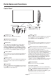 Parts Name and Functions Control Panel ON LCD4020/LCD4620 OFF LCD5220 1 POWER button ( ) 7 DOWN ( ) button Switches the power on/off. See also page 21. Activates the OSD menu when the OSD menu is turned-off. Acts as button to move the highlighted area down to select adjustment items within OSD menu. 2 MUTE button (LCD5220 only) Switches the audio mute ON/OFF. 8 EXIT button 3 INPUT button Acts as SET button within OSD menu.