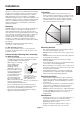 Setup 1. Determine the installation location CAUTION: Installing your LCD display must be done by a qualified technician. Contact your dealer for more information. CAUTION: MOVING OR INSTALLING THE LCD MONITOR MUST BE DONE BY FOUR OR MORE PEOPLE (LCD5220), BY TWO OR MORE PEOPLE (LCD4020/LCD4620). Failure to follow this caution may result in injury if the LCD monitor falls. NOTE: If you do not intend to use the Remote Control for a long period of time, remove the batteries. 3.